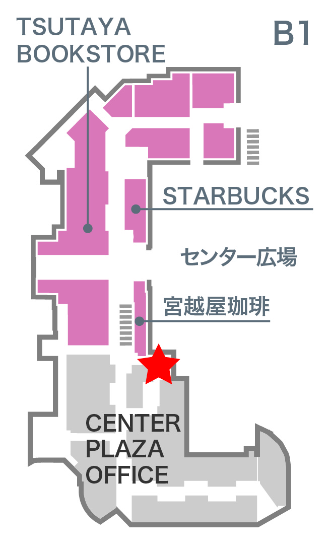 (センタープラザ1Fからの下りエスカレーター降りてすぐ左)