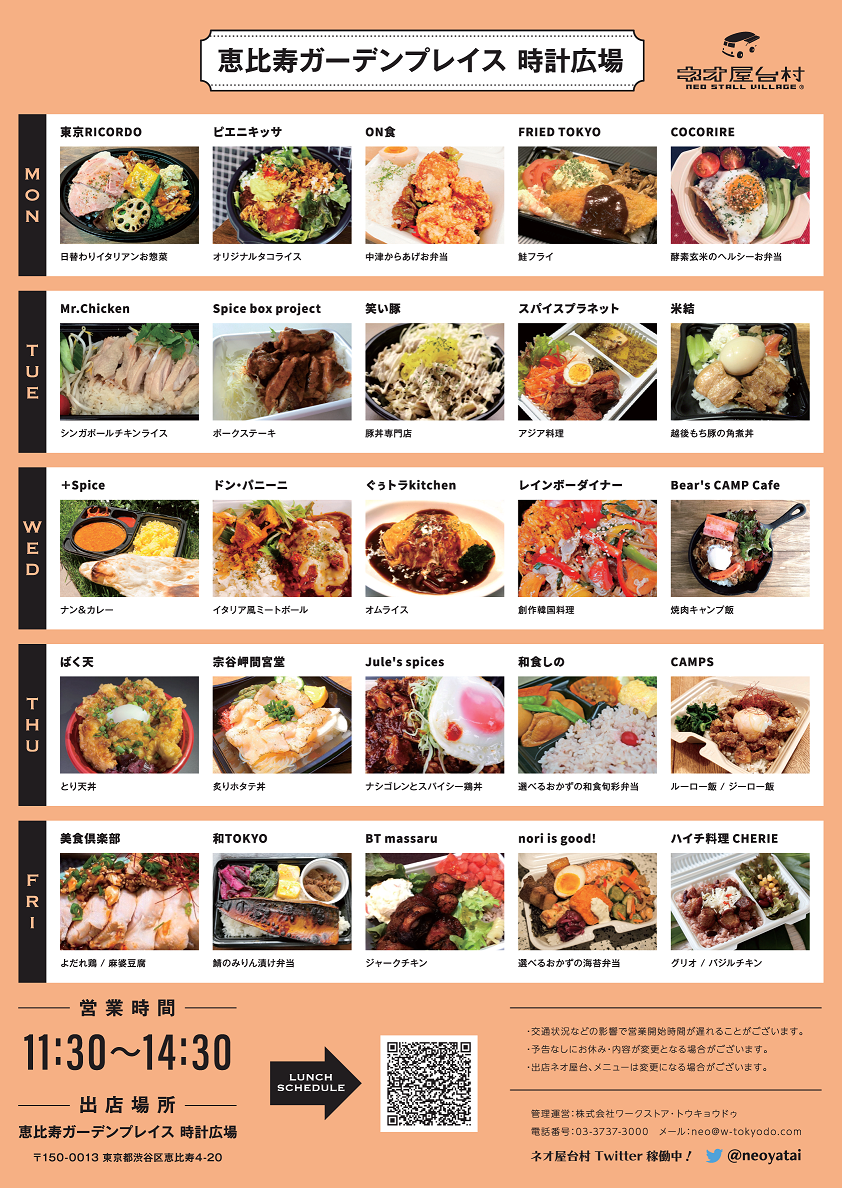 恵比寿ガーデンプレイス時計広場にて、キッチンカーによるランチの販売をいたします。