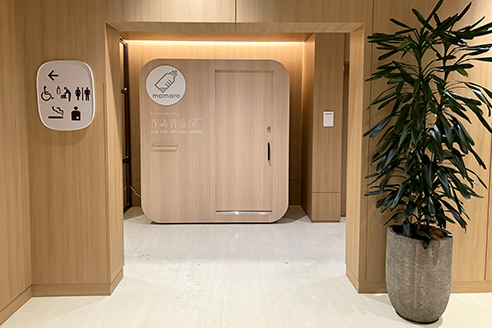 通路の奥のトイレ付近お子様の授乳やおむつ替えに