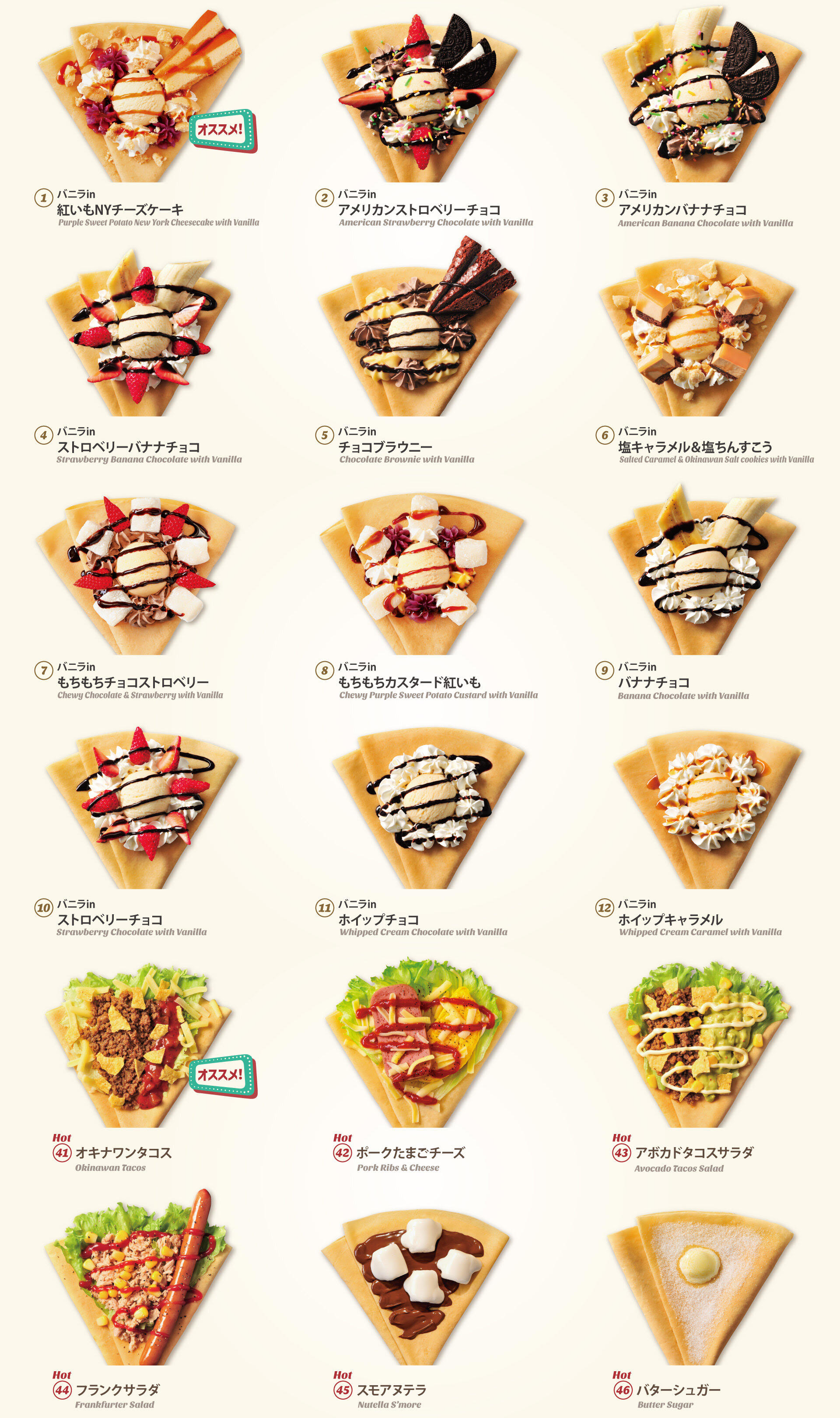 ※クレープメニューが品切れの場合もございます。 予めご了承下さいませ。