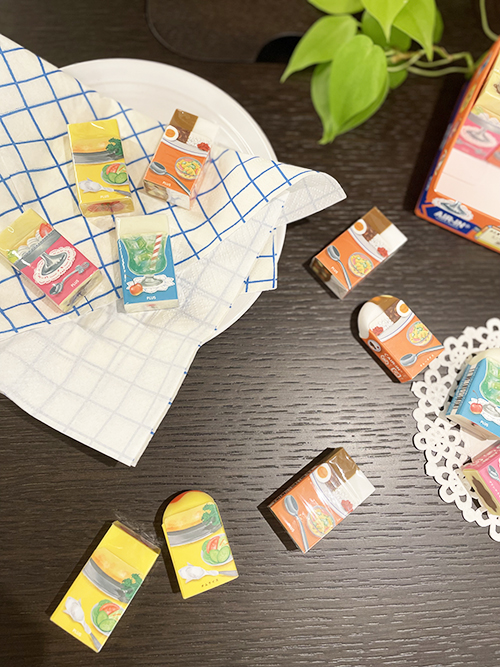 どこか懐かしい喫茶店の人気メニューをデザインした消しゴム。