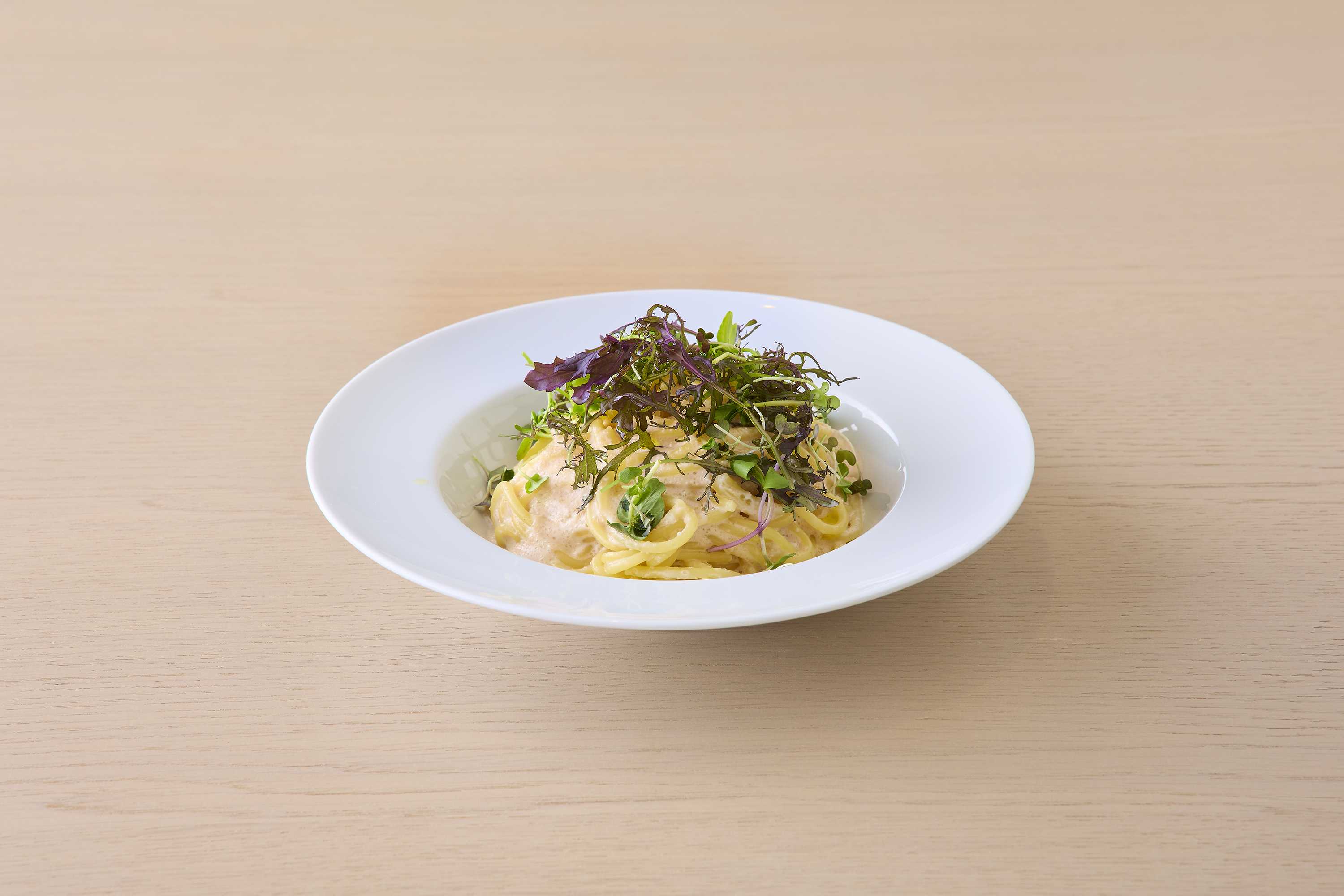 北海道産のたらこと北海道十勝マスカルポーネチーズを使用したまろやかな味わいのクリームパスタです。まずは混ぜずにそのままお召し上がりください。