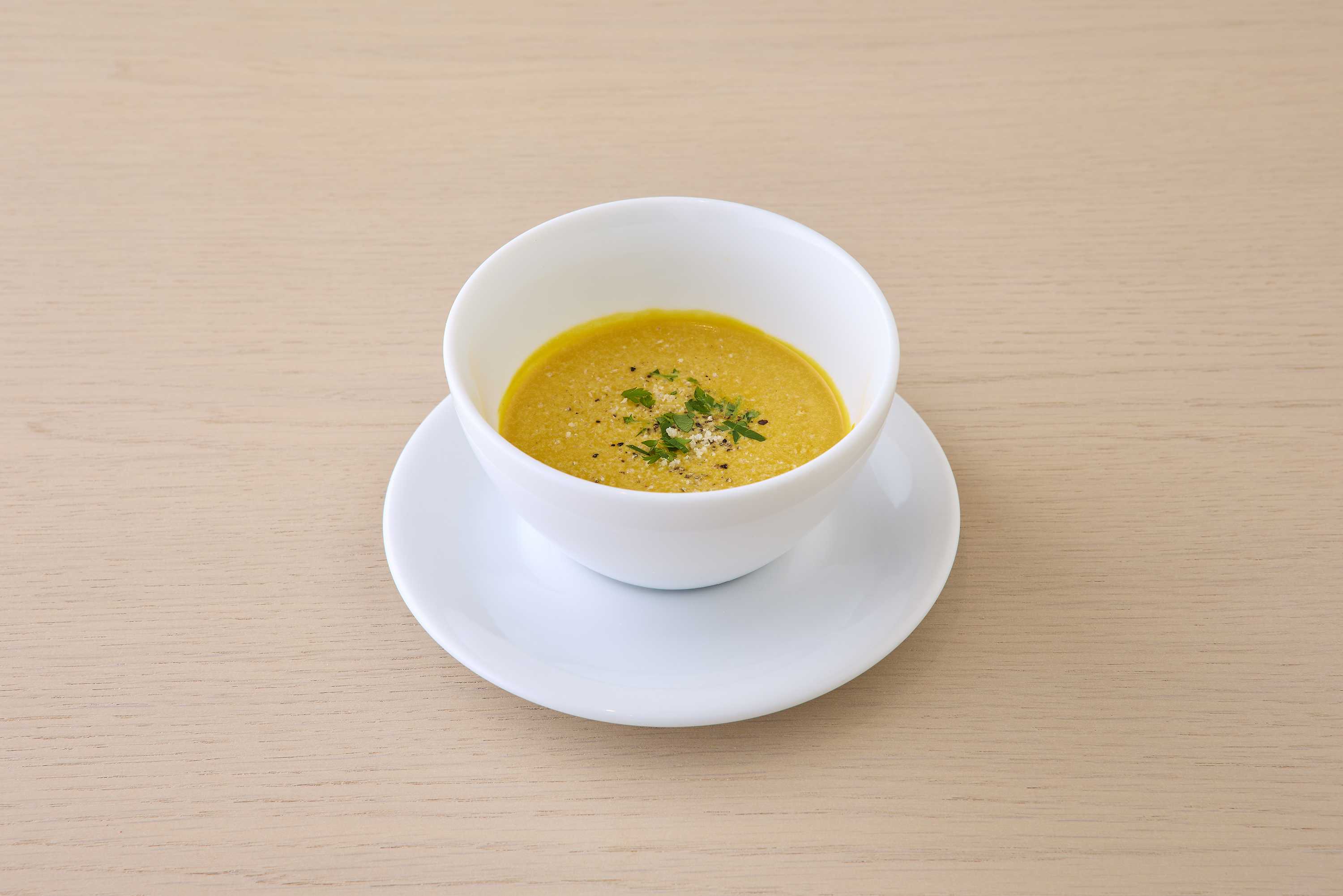 北海道産えびすかぼちゃのクリームスープです。かぼちゃの風味と甘さ、ミルクのコクを味わってください。